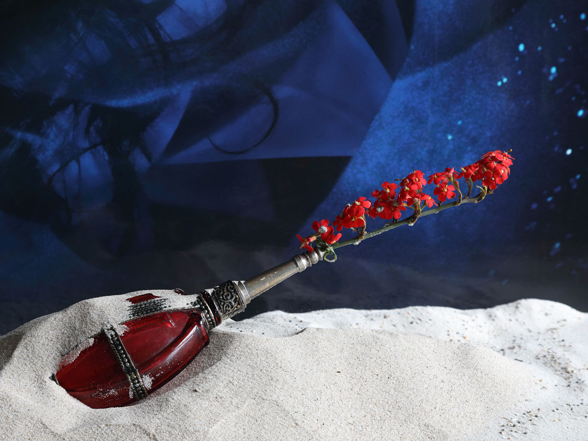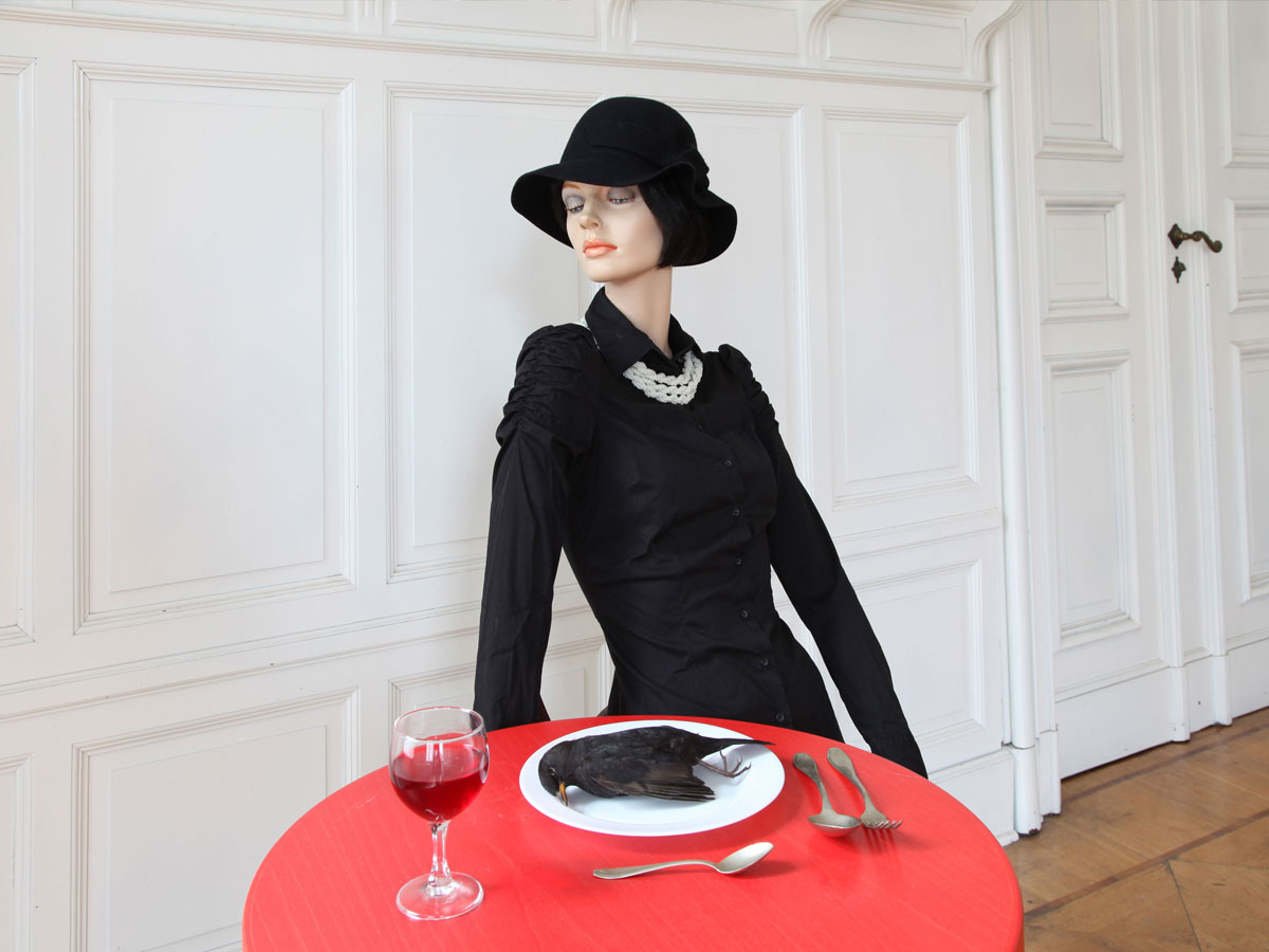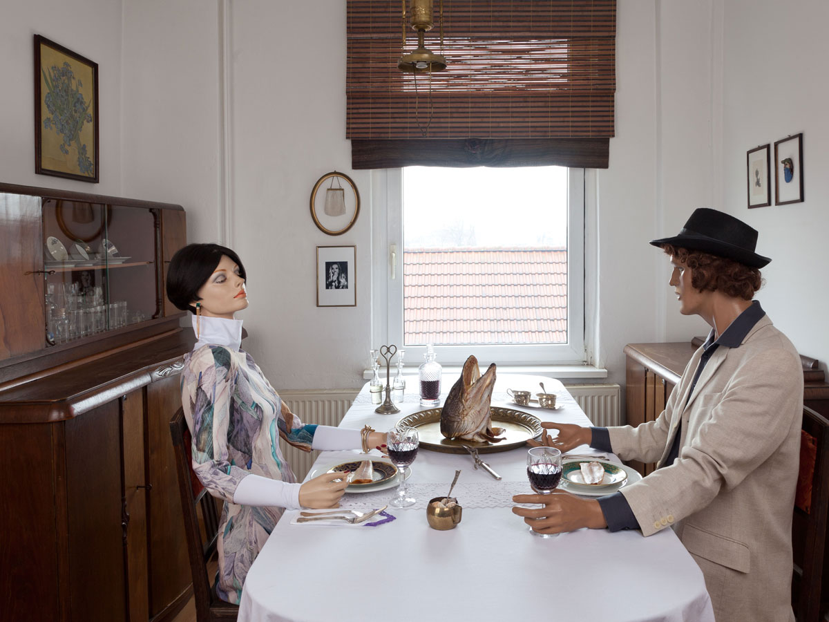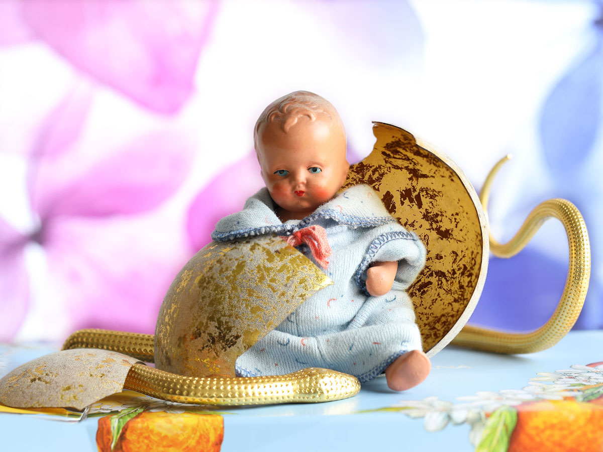Eine metaphorische Umsetzung erlaubt eine real-künstliche Anordnung von Gegenständen, die bildhafte Erzählungen hervorrufen können.